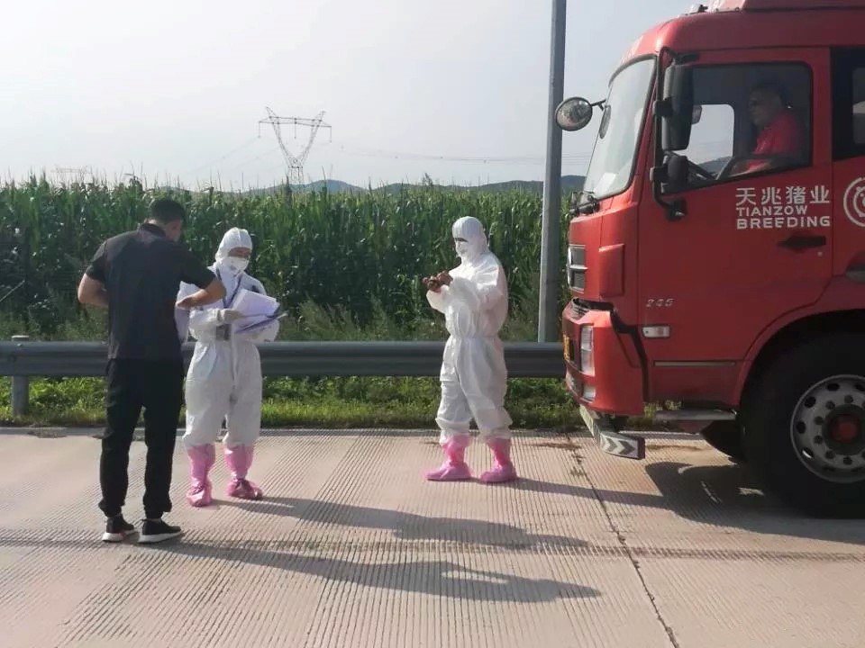 此外,為了確保在非洲豬瘟肆虐的環境下,保證法系原種豬成功入駐,勃利天兆也進行了萬無一失的準備。事前對場地與裝運車輛進行三次清洗消毒與高溫烘干,并進行全面檢測。運輸過程不停車、司機全程不下車。為保證種豬疫病防控安全,勃利縣動物防疫監督工作人員現場辦公進行查證驗物,并監督消毒。轉運完成后,經檢測從場區周邊環境到豬只健康全部達標。